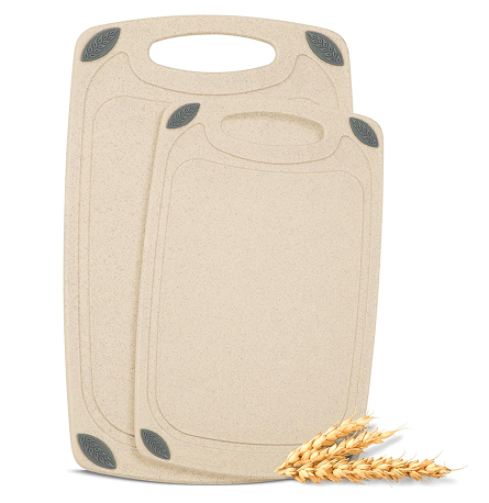 Made from compressed wheat straw fibers, these boards are a sustainable alternative to plastic and easy to handle in the kitchen.